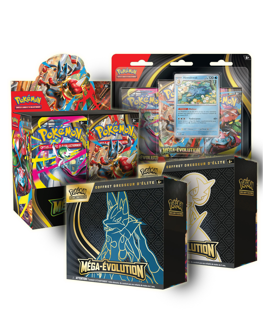 Le Pack Pokémon – FR ME01 inclut un Display de 36 boosters, une ETB et un Tripack, pour une immersion complète dans l’édition Méga-Évolution.