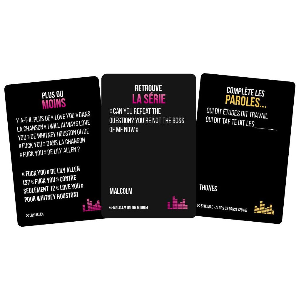 Le jeu qui défie votre culture musicale des années 90 et 2000 ! Vous pensez connaître les chansons sur le bout des doigts ? Testez vos connaissances musicales et défiez vos amis dans ce nouveau jeu d’ambiance iconique !